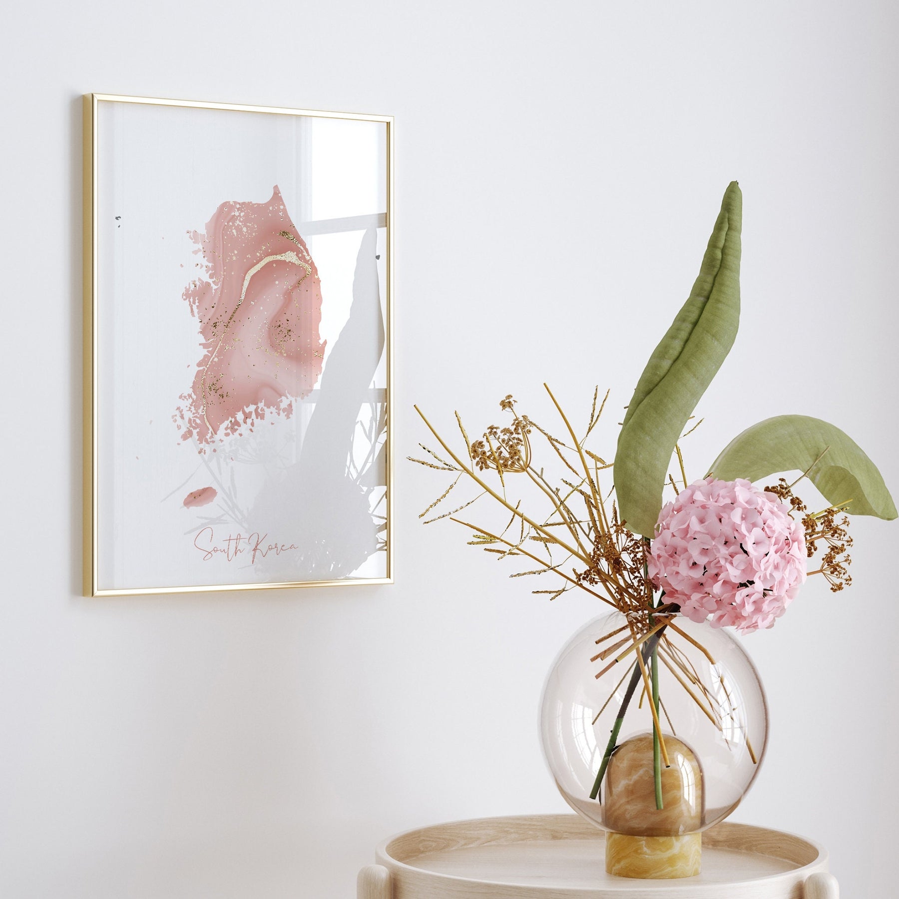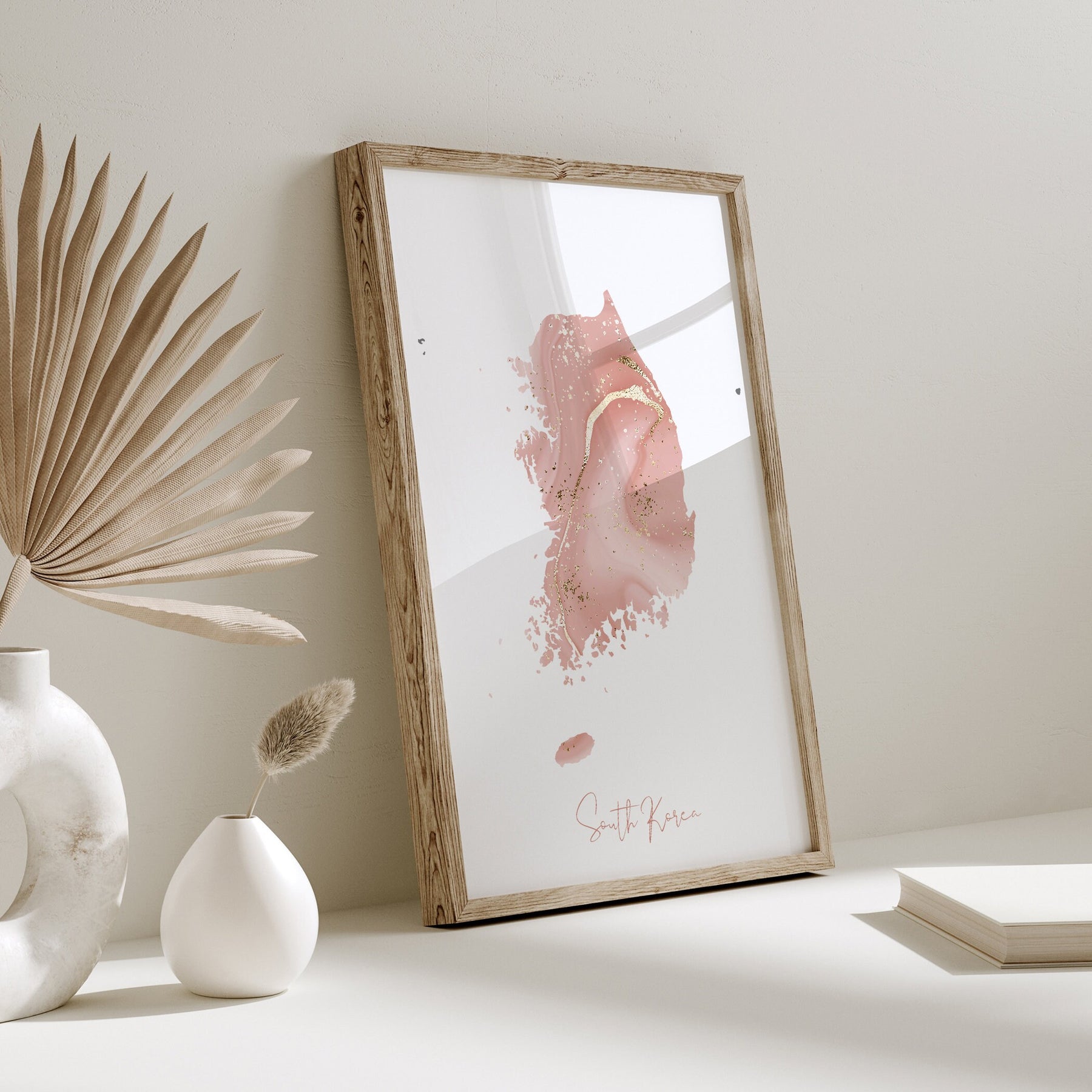 Unframed Pink & Gold South Korea Map Wall Art Print (Please note the colours may vary slightly from those displayed on your screen)